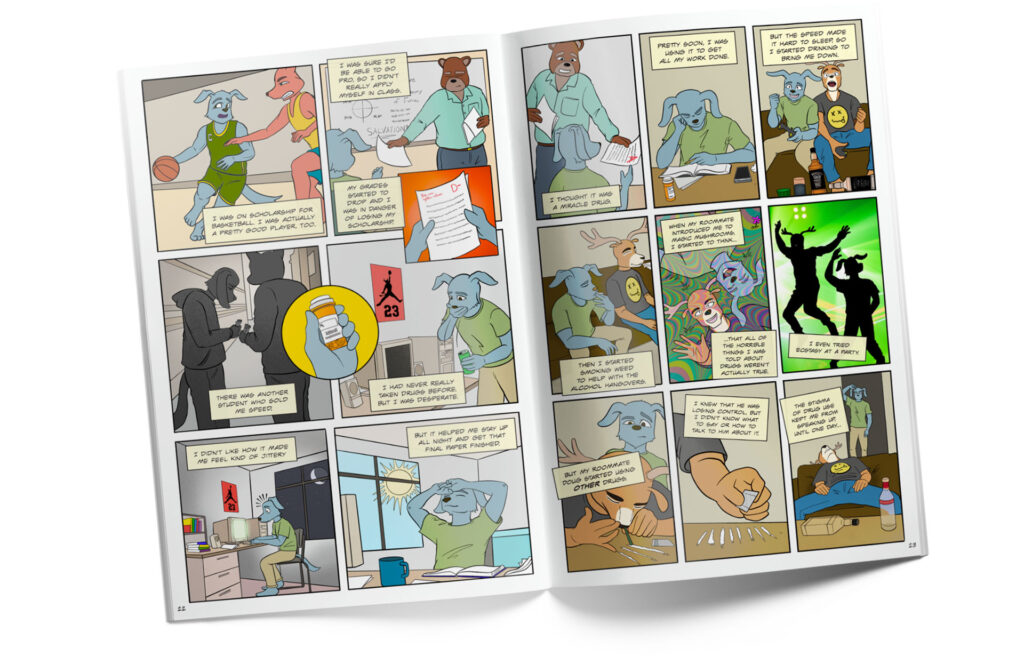 Families Against Narcotics needed a way to reach young adults to spread information about the stigma of drug abuse disorder. To do that, we produced I’m Still A Person, an original graphic novel to help readers talk about addiction and the harmful words we use when discussing it.